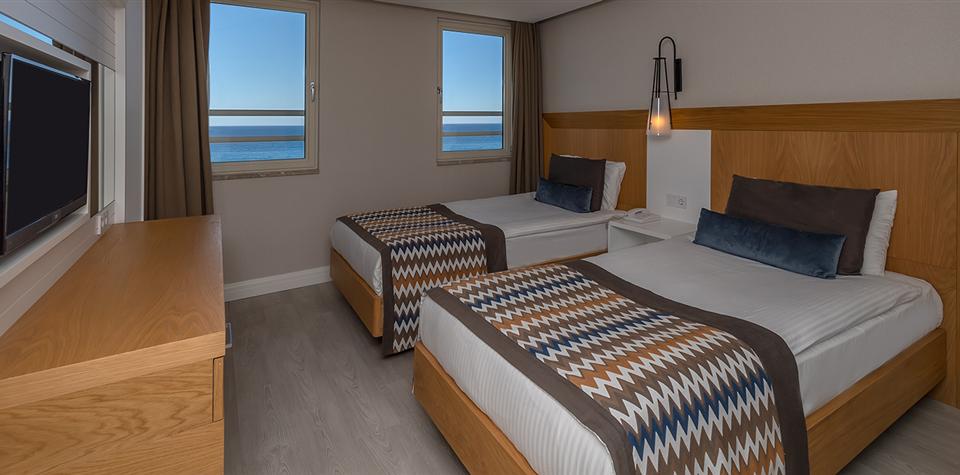 * Aile Odaları: 18 adettir. 38 m² genişliğindedir. Max. 4 kişilik konaklamaya uygundur. Deniz ve havuz manzaralı, ara kapılı ve iki odadan oluşmaktadır.