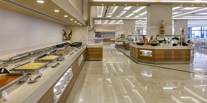 - Sabah kahvaltısı, öğle ve akşam yemekleri açık büfe olup, tesisin belirlemiş olduğu markalar dahilinde yerli içecekler 24 saat ücretsizdir. Taze sıkılmış meyve suları, ithal şampanyalar, tüm yerli ve yabancı şişe şaraplar ve lüks içecekler (12 yıl artı viskiler), konyak (V.S.O.P / X.O) ücretlidir.