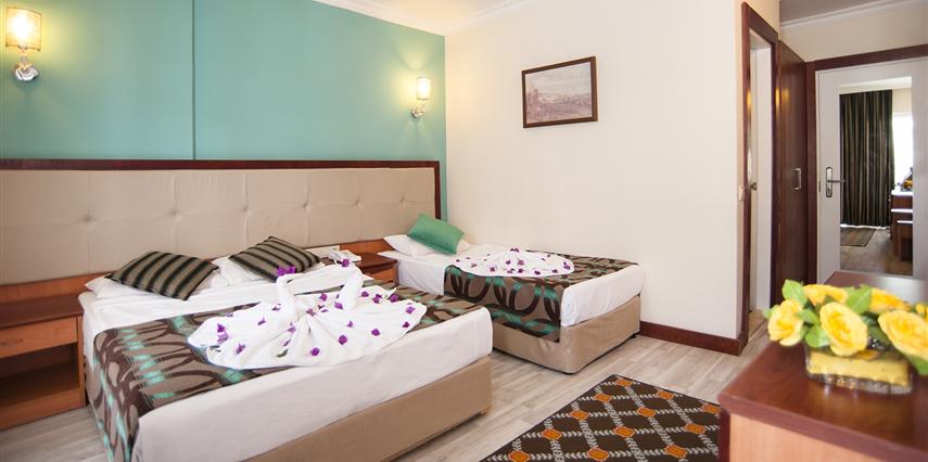 * 359 Standart Oda (24 m²) (1 french + 1 twin yatak), 20 Junior Suit Oda (35 m²) (1 french + 1 twin yatak), 25 Aile Odası (45 m²) (2 yatak odalı, tek banyo-wc)