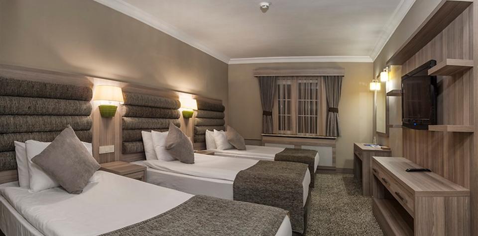 * Standart Oda; Tek Standart yenilenmiş Oda olup;Tek giriş,Tek yatak odası,Tek banyo mevcutdur,Max 2+2(chd) konaklama yapılır. Standart odalarda kısıtlı sayıda olan 4 lü odalar(2+2 chd) 1 french + 1 twin + 1 ek yatak şeklinde ve oda sıkışık olur.