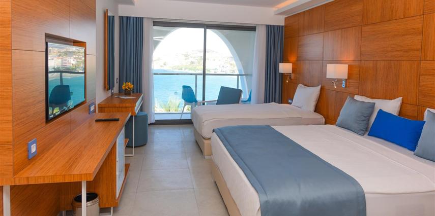* Deniz Manzaralı Standart Odaları: 25-30 m² genişliğindedir. Max. 2+2/3+1 kişilik konaklamaya uygundur.