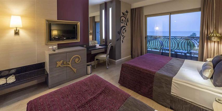 * Aile Odaları:79 adettir. 39 m² genişliğindedir. Max. 4+1 kişilik konaklamaya uygundur. Bir çift ve iki tek kişilik yatak, ara kapılı ve iki odadan oluşmaktadır.