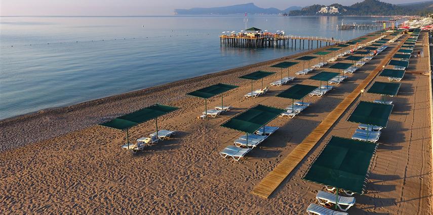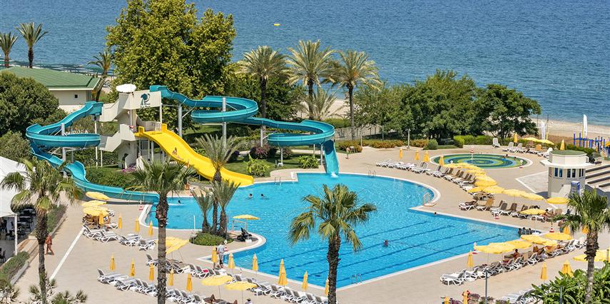 Deniz ve Havuz ÖzellikleriMirage Park Resort denize sıfırdır. Tesisin kendine özel 450 metre uzunluğunda kum ve ince çakıllı bulunmaktadır. Tesisin 2 adet açık, 1 adet kapalı ve 2 adet çocuk havuzunda keyifli günler geçirebilirsiniz. Su sporlarını sevenler için tesisin su kaydırağı, deniz bisikleti, kano, jet-ski, su topu, banana, katamaran, parasailing faaliyetlerinden yararlanarak gün boyu eğlenceli vakit geçirebilirsiniz.
