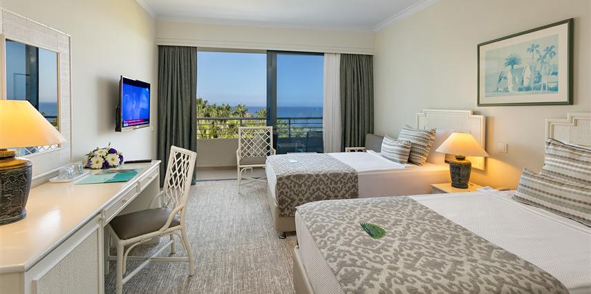* Tesisin toplam 598 odası mevcuttur. * Park Bina Standart (Kara ve Deniz Manzaralı) Odalar: 26 m² genişliğindedir. Maksimum 3 kişilik konaklamaya uygundur.