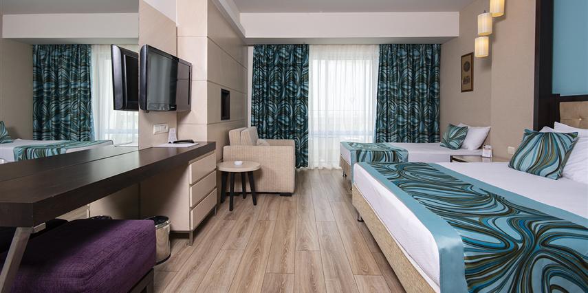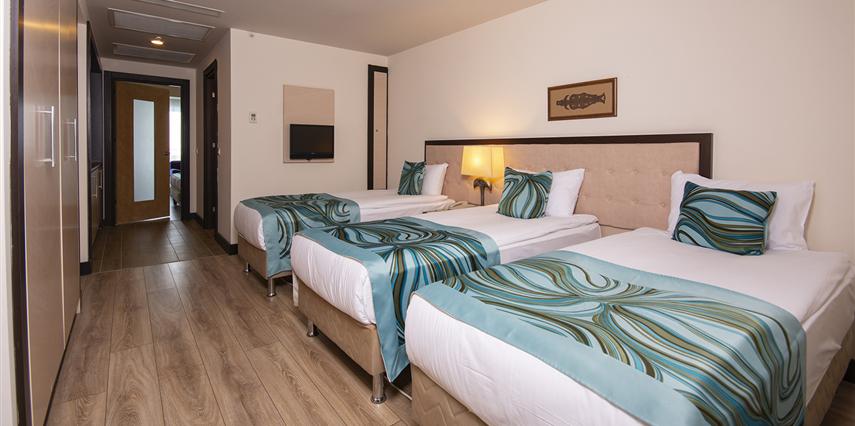 * Standart Deniz Tarafı Odalar, 232 adet mevcut olup, 40 m² genişliğindedir. 2+2 kişilik konaklamaya uygundur.